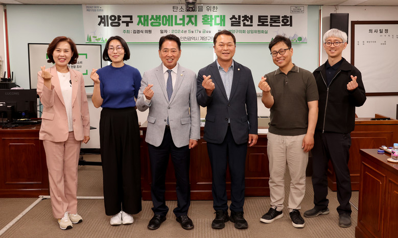 이번 토론회는 김경식 의원의 주재로 탄소중립을 위한 재생에너지 확대를 위한 전문가들의 의견을 청취하는 시간을 갖고 계양구 지역에너지 전환을 위한 정책을 논의했다.