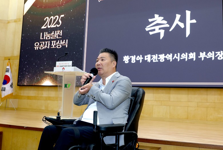 [대전 세계타임즈=이채봉 기자] 대전시의회 황경아 부의장은 24일 건양대학교 메디컬캠퍼스에서 개최된 2025년 나눔실천 유공자 포상식에 참석해 수상자를 축하하며 지역사회에 나눔을 실천해 온 유공자들에게 깊은 감사를 표했다.