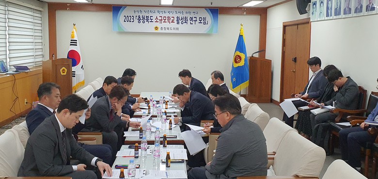 [충북 세계타임즈=이현진 기자] 충북도의회(의장 황영호)가 지난달 28일 학령인구 감소 시대 지역소멸을 막고 작은 학교 활성화 방안을 연구하기 위한「소규모학교 활성화 연구모임 (대표 김현문, 청주14)」 간담회를 의원휴게실에서 가졌다.