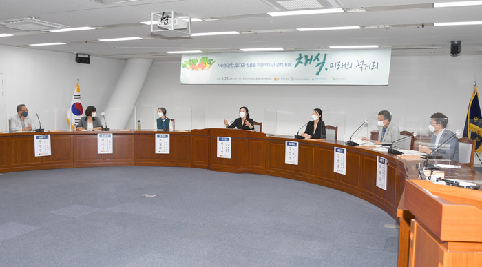 [광주=세계타임즈 손권일 기자] 광주광역시의회 신수정(더불어민주당.북구3) 의원이 24일 광주광역시의회 5층 예결위실에서 ‘채식, 미래의 먹거리’라는 주제로 2045 탄소중립도시를 지향하는 광주의 채식 정책 방향을 모색하는 정책 토론회를 진행했다.
