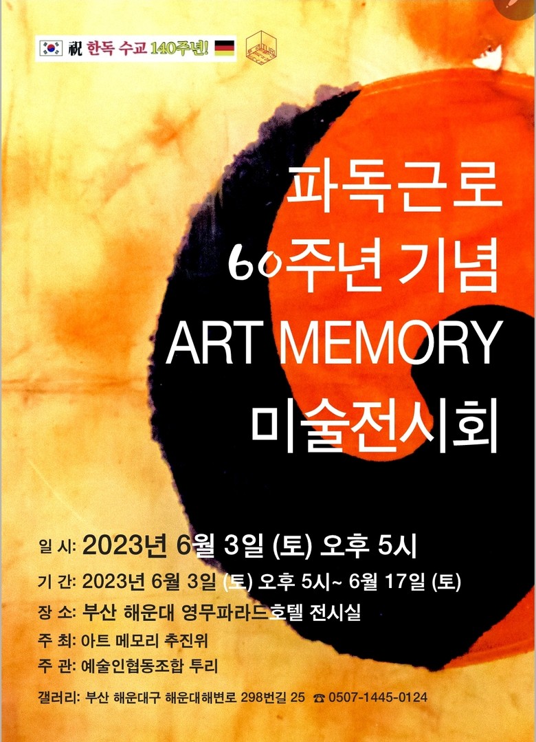 [세계타임즈 = 백진욱 기자] 대한민국 경제 발전의 초석이 된 파독 근로 60주년을 기념하는 ‘아트 메모리(ART MEMORY)’ 미술 전시회가 열린다. 이번 전시는 한독 수교 160주년을 맞이해 개최되는 전시회라서 더욱 뜻깊다.