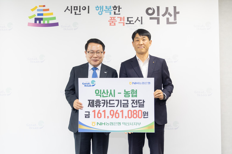 정헌율 시장은 "매년 제휴카드 기금 적립은 물론 다양한 협력 사업을 통해 지역 발전에 함께해 주고 있는 NH농협은행 익산시지부에 깊이 감사드린다"며 "전달받은 기금은 익산시 발전을 위해 소중하게 사용하겠다"고 말했다.