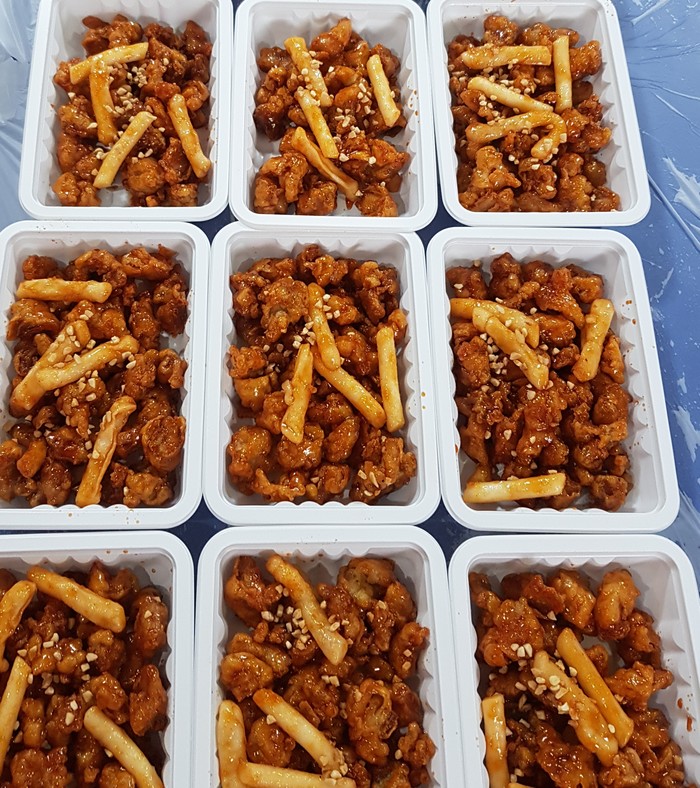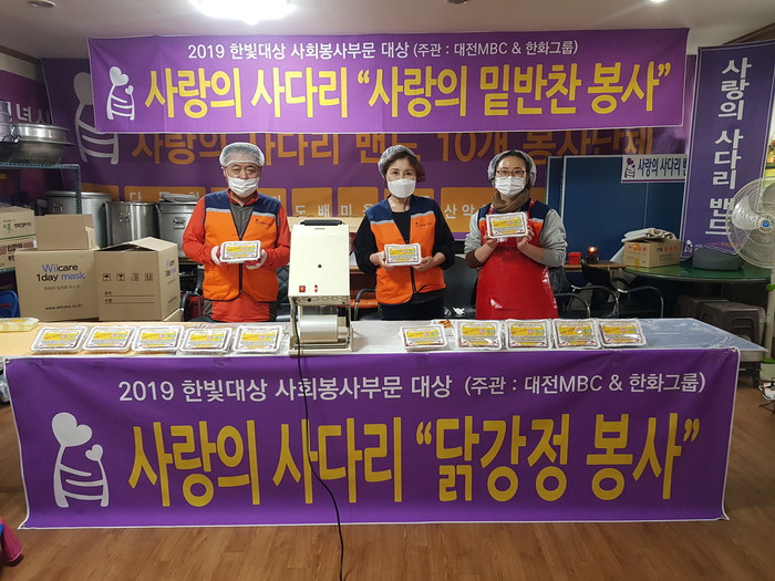 이날 봉사에는 나눔봉사단 유희자 단장, 송혜숙 부단장, 한철웅 국수봉사단장 등 3명이 대덕구 중리동에 위치한 사랑의 사다리 밴드 사무실에서 직접 닭강정 55개를 만들어서 전달을 하였다.