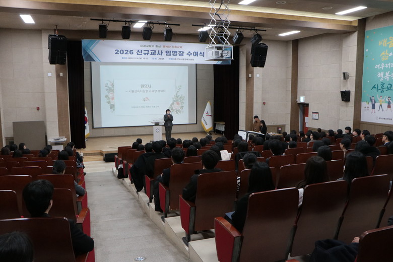 [시흥시 세계타임즈=송민수 기자] 경기도시흥교육지원청(교육장 채열희)은 2월 23일(월) 교육지원청 3층 다온관에서 2026.3.1.자 임용 예정인 신규교사 146명에 대한 임명장 수여식을 개최했다.