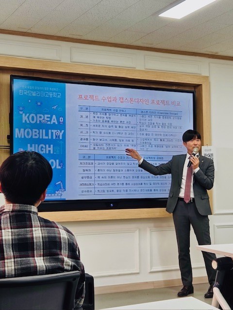 또, 캡스톤 디자인의 교육적 의미에 대해 “프로젝트 수업이 역량을 키우는 ‘과정 중심’이라면, 캡스톤 디자인은 배운 내용을 실제 과제에 적용해 성과물을 만들어내는 ‘실무 적용형’”이라며 “특성화고 학생들이 전공 학습 동기를 얻고 진로 결정을 구체화하는 데 효과적”이라고 설명했다. 건축과의 목조주택 제작, 스마트팩토리과의 PLC 기반 제작물, 자동차과의 업사이클링 전기차 제작, 에너지·화공 분야의 전지·식물 키트 제작 등 실제 사례도 소개됐다.
