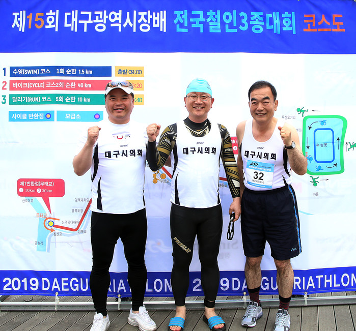 [대구=세계타임즈 한성국 기자] 대구시의회 의원 3명(강민구, 김태원, 전경원)은 28일 수성못과 신천동로 일원에서 개최된 ‘제15회 대구광역시장배 전국철인3종대회’에 참가했다.