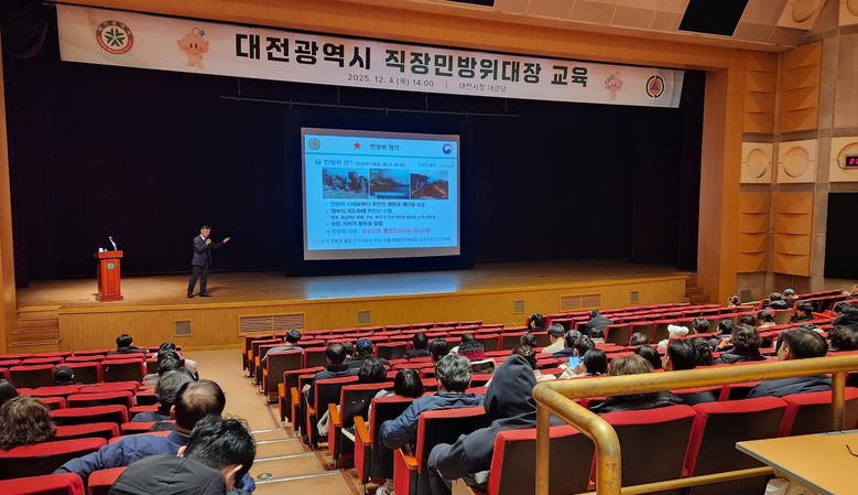 [대전 세계타임즈=이채봉 기자] 대전시는 4일 오후 14시부터 18시까지 직장민방위대장의 평시 재난안전사고 및 민방위사태 발생을 대비해 시청 대강당에서 ‘2025년 직장민방위대장 교육’을 진행했다.