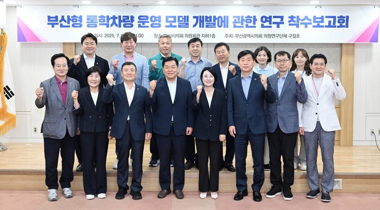 [부산 세계타임즈=이용우 기자] 부산광역시의회 의원연구단체 ‘구절초’는 7월 9일 오후 2시, 의원회관 지하 1층에서 『부산형 통학차량 운영 모델 개발에 관한 연구』 착수보고회를 개최하며 본격적인 정책연구에 들어갔다.