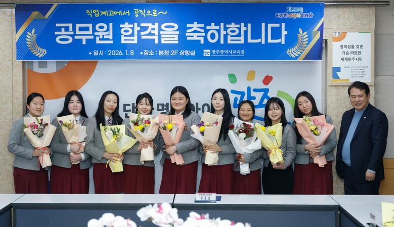 시교육청이 처음으로 도입한 ‘상업계고 우수인재 전형’을 통해 교육행정직으로 공직생활을 시작하게 된 광주여자상업고등학교 김보경 학생은 “학교에서 공무원 대비반과 맞춤형 지원 프로그램을 지원해줘 체계적으로 준비할 수 있었다”며 “직업계고 출신 1호 교육행정직 공무원으로서 책임감을 갖고 최선을 다하겠다”고 포부를 밝혔다.