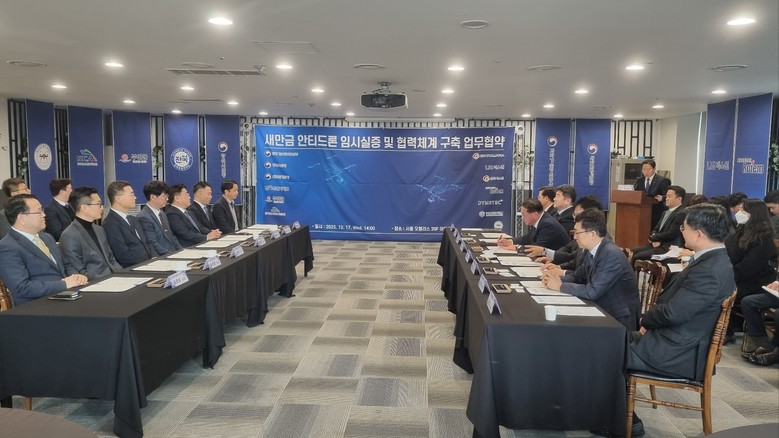 이에 따라 정부와 참여 기관·기업은 ▲수요 기반 안티드론 기술 개발 ▲새만금 지역을 활용한 임시 실증 추진 ▲실증 환경과 제도·기술 기반 조성 등에 상호 협력하기로 했다.