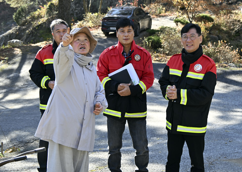 최 군수는 팔성사 주변의 낙엽·건조물 등 발화 위험요인을 확인하고 즉각적 대응이 가능한지 관계자들과 대응 체계를 점검했다.