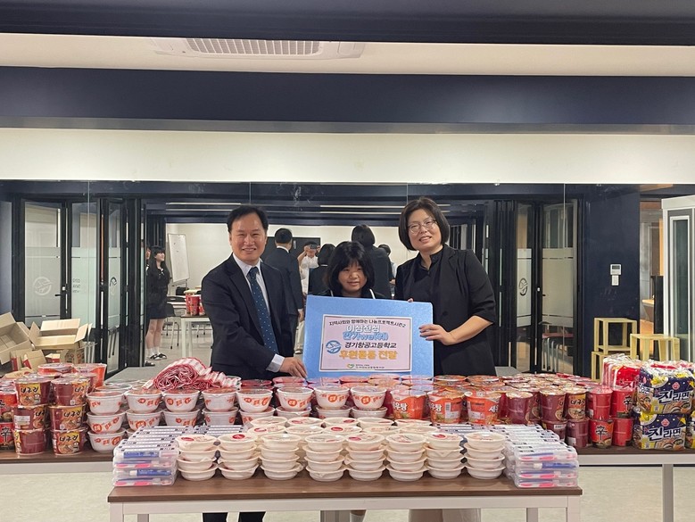 [광명시 세계타임즈=송민수 기자] 광명시 소재 경기항공고등학교(교장 유형진)는 2023. 9. 11.(월) 광명시립하안노인종합복지관에 2023년 지역사회와 함께하는 나눔 프로젝트 ‘이심전심 한가we(위)’ 사업의 일환으로 ‘라면, 즉석밥, 양치 세트’ 등의 생활필수품을 기부했다.