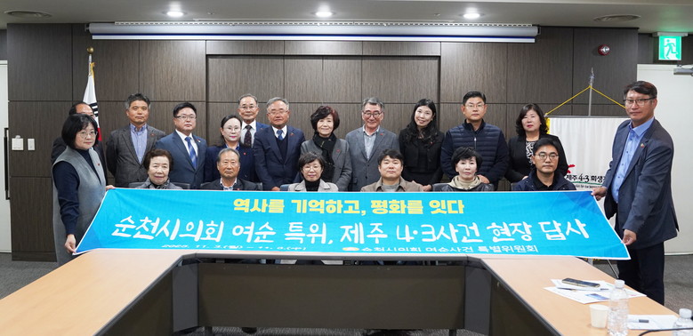 [순천시 세계타임즈=우덕현 기자] 순천시의회 여수·순천 10·19사건 특별위원회(위원장 최미희, 이하 ‘여순특위’)는 11월 4일 제주 4·3 평화공원과 위령탑을 찾아 참배한 후, 제주 4·3 희생자 유족회와 간담회를 개최해 두 지역의 과거사 현안 해결을 위한 협력과 연대 방안을 심도 있게 논의했다.