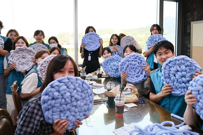 지난 8월 31일에는 사내 봉사 동아리와 함께 유기동물을 위한 기부물품 만들기에 나서기도 했다. 10개 동아리, 총 42명으로 이루어진 봉사단은 한 자리에 모여 유기동물을 위한 놀이매트를 직접 제작했다. 실처럼 돌돌 말린 자이언트 얀은 임직원들의 손을 거쳐 원형의 놀이매트로 재탄생했다. 완성된 물품은 수익의 일부를 유기동물을 위해 사용하는 예비 사회적 기업 ㈜바닐라를 통해 유기동물 보호소에 기부될 예정이다.