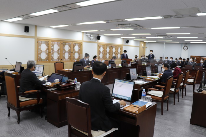 김하수(청도) 위원장은 내년부터 지방의회직이 신설되어 지방의회에 대한 독립성이 강화되리라 기대가 되면서도 인사권이외 조직과 예산에 대해서는 여전히 집행부 권한이라 아쉬운 점도 있다고 하며 집행부에서 좀 더 관심을 가지고 제반 실무에 대한 세심한 준비를 당부하고 유능한 인력들이 의회로 지원할 수 있도록 요청했다.