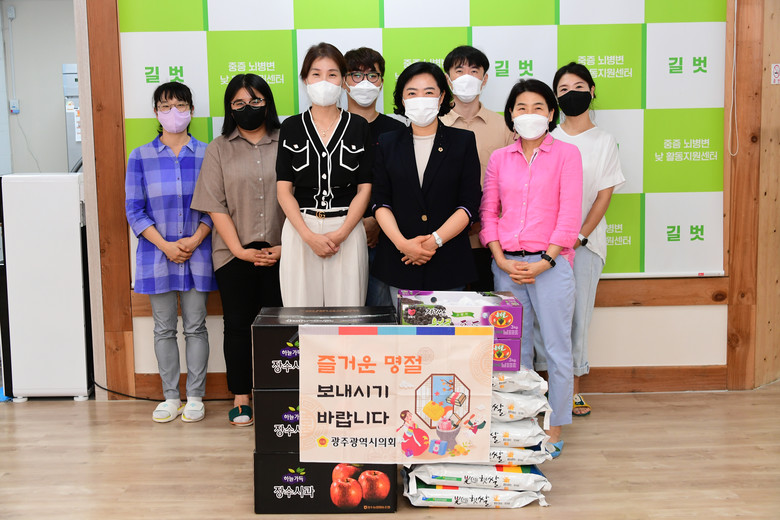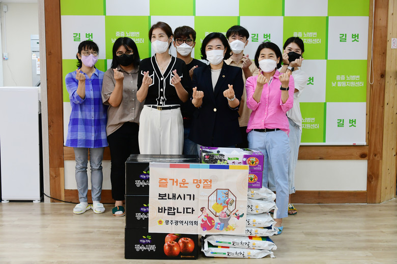 [광주 세계타임즈=손권일 기자] 광주광역시의회 신수정 교육문화위원장은 7일 오전 추석 명절을 맞아 광주시 북구에 위치한 길벗 중증 뇌병변 활동지원센터를 방문해 위문품을 전달하고 관계자를 격려했다