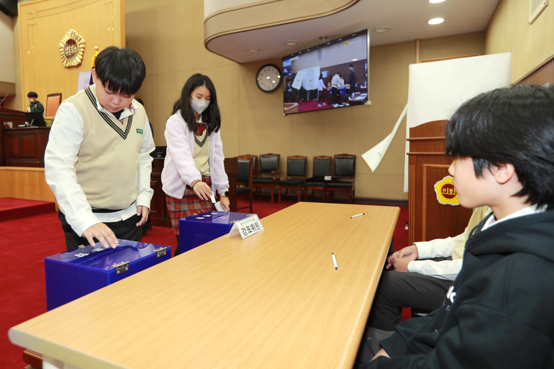 청소년 의회교실은 학생들이 1일 도의원이 되어 본회의장에서 의장 선거, 안건처리, 2분 자유발언 등 의정활동을 체험하는 프로그램이다.