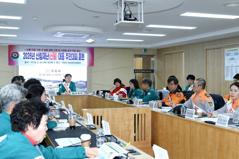 훈련은 구리시 부시장을 비롯한 관련 부서장과 구리소방서, 구리경찰서, 한국전력공사, 한국석유공사 등 관계기관 관계자와 교문1동 지역대표가 참여한 가운데 토의형 방식으로 진행됐다. 산불 발생 시 기관별 역할과 임무를 사전에 점검하고, 상황 단계별 대응 체계와 협조 절차를 종합적으로 논의했다.