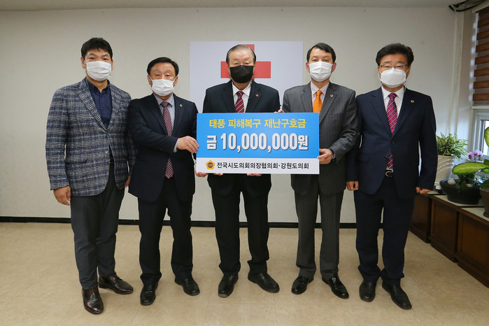 이번에 전달한 재난구호금은 전국시·도의회의장협의회가 지난 10월 30일 전라남도 장성군(백양관광호텔)에서 개최한 제5차 임시회에서 태풍「마이삭」 및「하이선」등으로 큰 피해를 입은 2개 시·도(강원, 경북)에 피해복구를 돕고자 의결한 재난구호금이다.