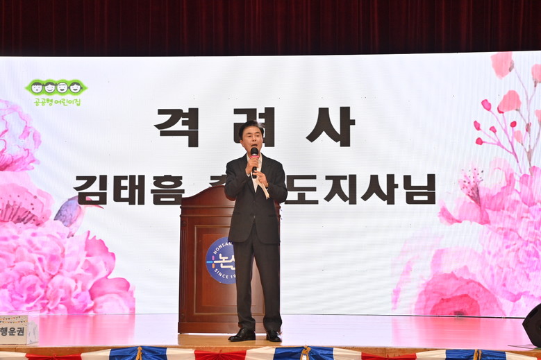 이 자리에서 김태흠 지사는 “공공형어린이집을 통해 아이들이 안전하게 성장할 수 있는 환경을 만들어 주신 보육교직원들의 노력이 매우 소중하다”며, “아울러 기후위기 조기교육 등 미래세대를 위한 다양한 노력에도 감사드린다”고 전했다.