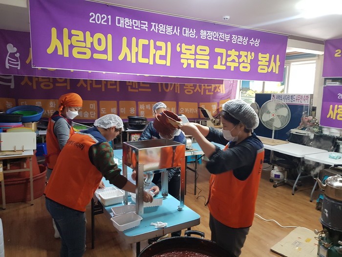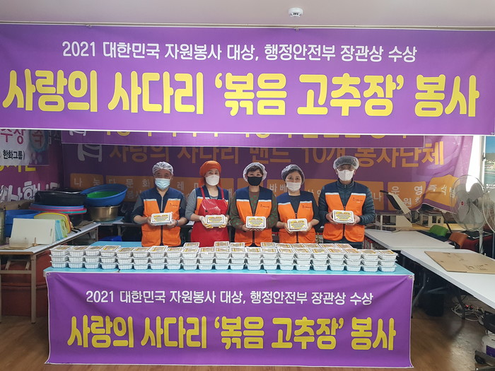 [대전=세계타임즈 이채봉 기자] 6년째 꾸준히 대전시 소외계층을 위해서 다양한 봉사를 펼치고 있는 대전시 봉사단체 사랑의 사다리 밴드(리더 이정제)는 16일 오전10시~오후12시, 볶음 고추장 80개를 만들어서 대전시 장애인주간보호센터 4곳에 전달을 하였다.