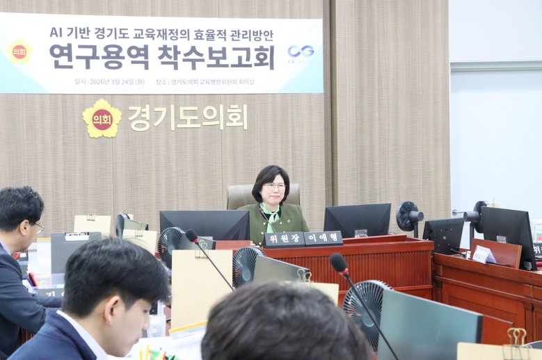 [경기도 세계타임즈=송민수 기자] 경기도의회 위원회 연구단체인 ‘교육행정연구회’(회장 이애형)는 24일 교육행정위원회 회의실에서 「AI 기반 경기도 교육재정의 효율적 관리 방안」 연구용역 착수보고회를 개최하고 본격적인 연구 활동에 돌입했다.