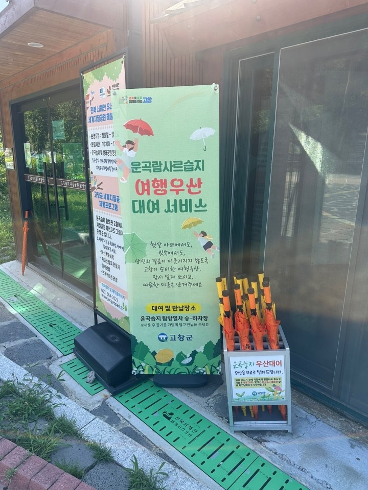 이에 군은 관광지 곳곳에 대형우산을 비치해 갑작스러운 비나 강한 햇볕 속에서도 고창의 아름다운 자연과 문화유산을 마음껏 즐길 수 있게 했다.