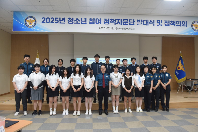 [세계타임즈]최성룡기자 = 마산동부경찰서는 지난 18일 경찰서 7층 대강당에서 ‘2025년 청소년 정책자문단’발대식과 함께 위촉장을 수여하는 등 정책제언 회의를 개최했다.