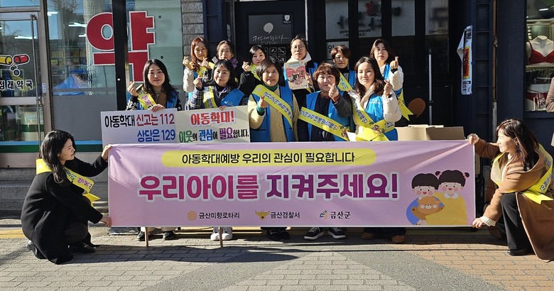 이번 캠페인은 금산경찰서, 미향로터리클럽 등 유관기관과 함께 증가하는 아동학대 사례에 대응해 지역사회 전체가 아동 보호의 주체가 돼야 한다는 공감대에서 진행됐으며 긍정양육 및 신고방법 등 내용이 담긴 홍보물을 배포했다.