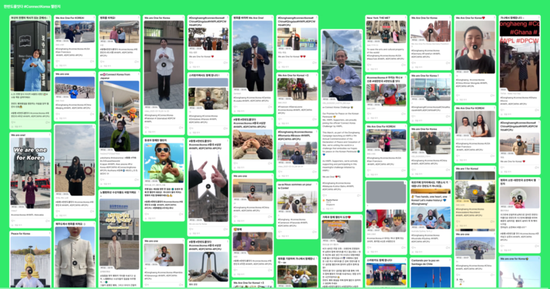 한편 HWPL은 남북의 자유왕래 촉구와 국제적 지지를 통한 통일의식 고취를 위해 ‘한반도를 잇다(커넥트 코리아) 챌린지’(https://togetherconnectkorea.kr)를 진행 중에 있다. 시작 10일만에 72개국 243개 도시에서 시민들이 참여했고 1,350개 이상의 콘텐츠가 등장했다.