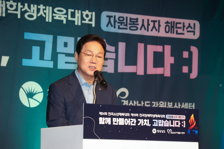 박완수 도지사는 이날 인사말을 통해 “여러분의 아름다운 마음과 헌신 덕분에 이번 체전이 성공적으로 마무리될 수 있었다”며, “경남의 자원봉사는 역시 다르다는 평가를 들을 만큼, 도민의 자긍심을 높이는 계기가 됐다”고 말했다.