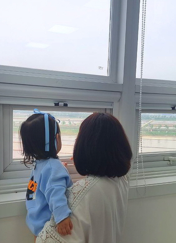 | ▲ 신천지 부천교회 장선희 성도와 둘째 아이가 교회에서 창밖을 바라보고 있다. [사진 제공 = 신천지 부천교회] |