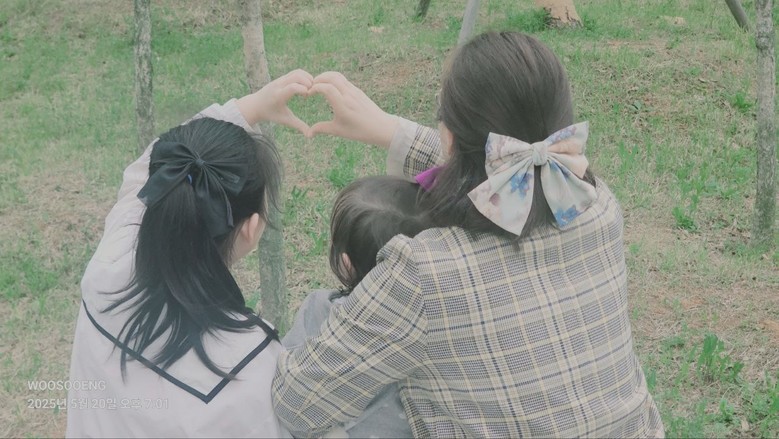 | ▲ 신천지 부천교회 장선희 성도와 두 딸이 하트 모양을 함께 만들고 있다. [사진 제공 = 신천지 부천교회] |