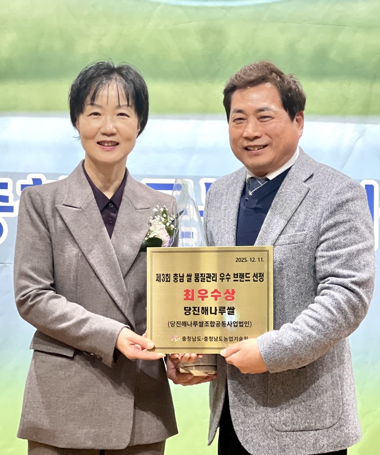 올해는 총 3개 브랜드가 최종 우수 브랜드로 선정됐으며, 당진해나루쌀은 지난해 ‘우수상’에 이어 올해 ‘최우수상’을 수상하며 2년 연속 품질관리 우수 브랜드 쌀로 선정되는 성과를 거뒀다. 이는 당진 쌀 산업의 경쟁력을 다시 한번 입증한 결과다.