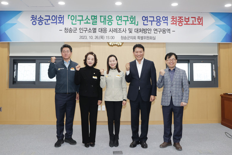 보고회를 주재한 정미진 대표 의원은 “연구단체 활동에 국한하지 않고 인구정책에 대해 청송군 집행부와 지속적으로 소통하고, 의회 차원의 관심과 노력을 계속 기울여 나가겠다”고 밝혔다.