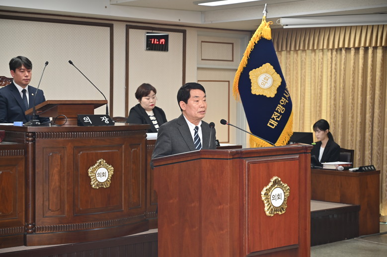 [중구 세계타임즈=이채봉 기자] 대전 중구의회(의장 오은규)는 제264회 임시회 제1차 본회의에서 이정수 의원이 5분 자유발언을 진행했다고 밝혔다.