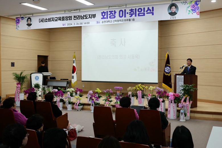 [전남 세계타임즈=우덕현 기자] 전라남도의회 서동욱 의장은 3월 26일 순천대학교 산학협력관에서 열린 소비자교육중앙회 전남지부 회장 이·취임식에 참석했다.