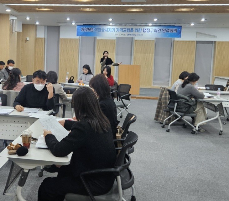 시는 17일 전북테크비즈센터에서 완산구와 덕진구, 완주군, 김제시 등 도내 시군 공시지가 담당 공무원과 감정평가사 등이 참석한 가운데 인접지역 간 개별공시지가의 불균형 문제를 해소하기 위한 ‘2025년도 개별공시지가 가격균형 연석회의’를 가졌다.