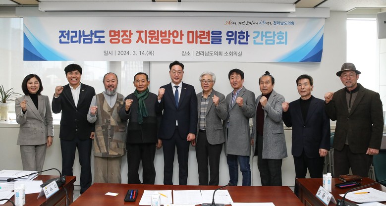 [전남 세계타임즈=우덕현 기자] 나광국 전남도의원(더불어민주당‧무안2)은 지난 3월 14일 전라남도의회에서 전라남도 명장과 전남도 관계 공무원이 자리한 가운데 ‘전라남도 명장 지원방안 마련을 위한 간담회’를 개최했다.
