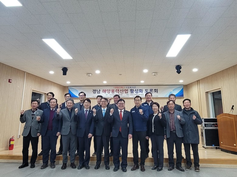 [경남 세계타임즈=최성룡 기자] 허동원 경남도의회 경제환경위원장(국민의힘, 고성2)은 지난 18일(화) 고성군 동해면 복지회관에서 ‘경남1호 기회발전특구* 지정에 따른 해양풍력산업’이라는 주제로 경남 해양풍력산업 활성화와 조선·풍력산업 발전을 위한 산·학·연·관 관계자 토론회를 개최하였다.