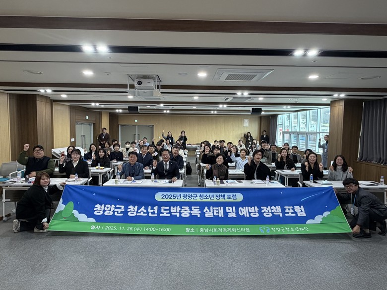 청양군청소년재단(이사장 윤여권)과 청양군청소년상담복지센터(센터장 박시연)는 지난 26일 충남사회적경제혁신타운에서 ‘2025년 청양군 청소년 도박문제 실태 및 예방 정책 포럼’을 개최했다. 이날 포럼에는 청소년, 유관 기관, 지역사회 관계자 등 약 50명이 참석해 청소년 도박문제에 대한 심도 깊은 논의를 이어갔다.