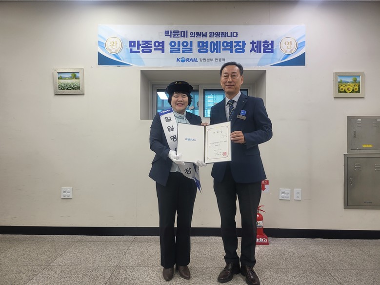 [강원도 세계타임즈=김민석 기자] 11월 21일 강원특별자치도의회 박윤미 도의원은 원주시 만종역 일일명예역장에 위촉되었다.