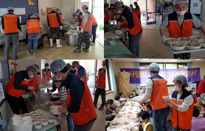 이날 봉사에는 유희자 단장, 송남석 단장, 신상일 단장을 비롯하여 회원 20명이 삼계탕과 닭죽을 점심시간에 대접을 하였다.