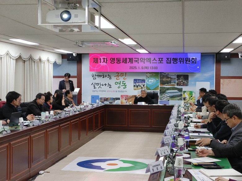 [세계타임즈=영동군 이현진 기자] 2025영동세계국악엑스포의 개막이 240여 일 앞으로 다가온 가운데, 영동세계국악엑스포조직위원회(이하 조직위)는 1월 9일 영동군청 상황실에서 첫 집행위원회를 개최 했다.