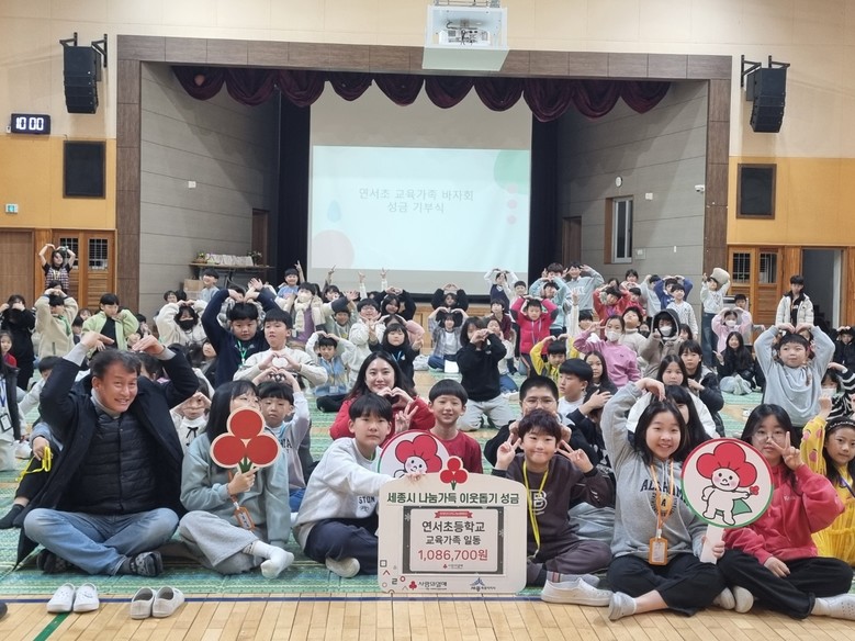 [세종 세계타임즈=이채봉 기자] 연서초등학교(교장 이강의, 이하 연서초)가 ‘2024 연서 나눔의 날’ 행사를 통해 얻은 수익금(1,086,700원)을 사회복지법인 사회복지공동모금회 세종특별자치시지회에 기부했다.