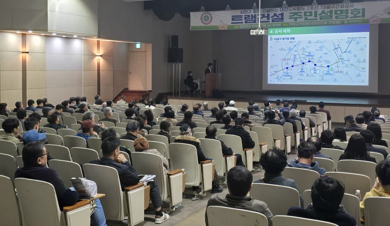 [대전 세계타임즈=이채봉 기자] 대전시는 27일 오후 3시, 기독교연합봉사회관에서 도시철도 2호선 12공구 건설공사와 관련한 주민설명회를 성황리에 개최했다. 설명회에는 약 300여 명의 지역 주민들이 참석해 높은 관심과 참여를 보였다.
