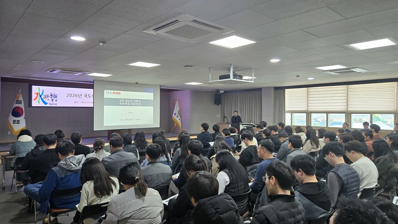 [합천군 세계타임즈=심하린 기자] 합천군(군수 김윤철)은 6일 군청 대회의실에서 공무원 150여 명을 대상으로 2026년도 국비 확보를 위한 직원 역량강화 교육을 실시했다.