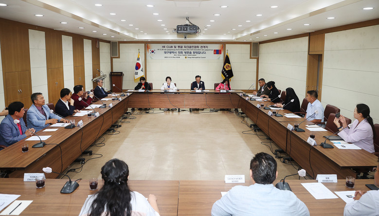 [대구 세계타임즈=한성국 기자] 대구시의회 이만규 의장을 비롯한 이재화 의원은 8월 31일(목) 오후 4시 대구시의회를 방문한 몽골 HR클럽 일행과 면담을 가지고 몽골 기업인들의 대구 연수를 환영했다.