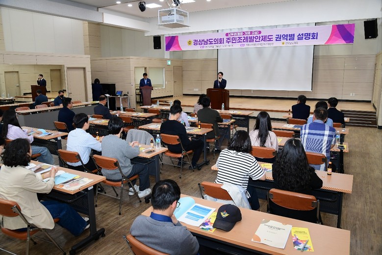 [경남 세계타임즈=최성룡 기자] 경상남도의회(의장 김진부)와 시군의회가 함께한 ’주민조례발안제도 5개 권역 설명회‘ 가 그 첫 시작으로 남부권 대표 거제시 여성인력개발센터에서 개최되었다.