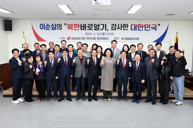 [경남 세계타임즈=최성룡 기자] 경상남도의회 국민의힘 의원단은 24일 오후 3시, 도의회 대회의실에서 탈북 간호장교 출신이자 방송인으로 활동 중인 이순실 강사를 초청해 특별 강연을 개최했다.